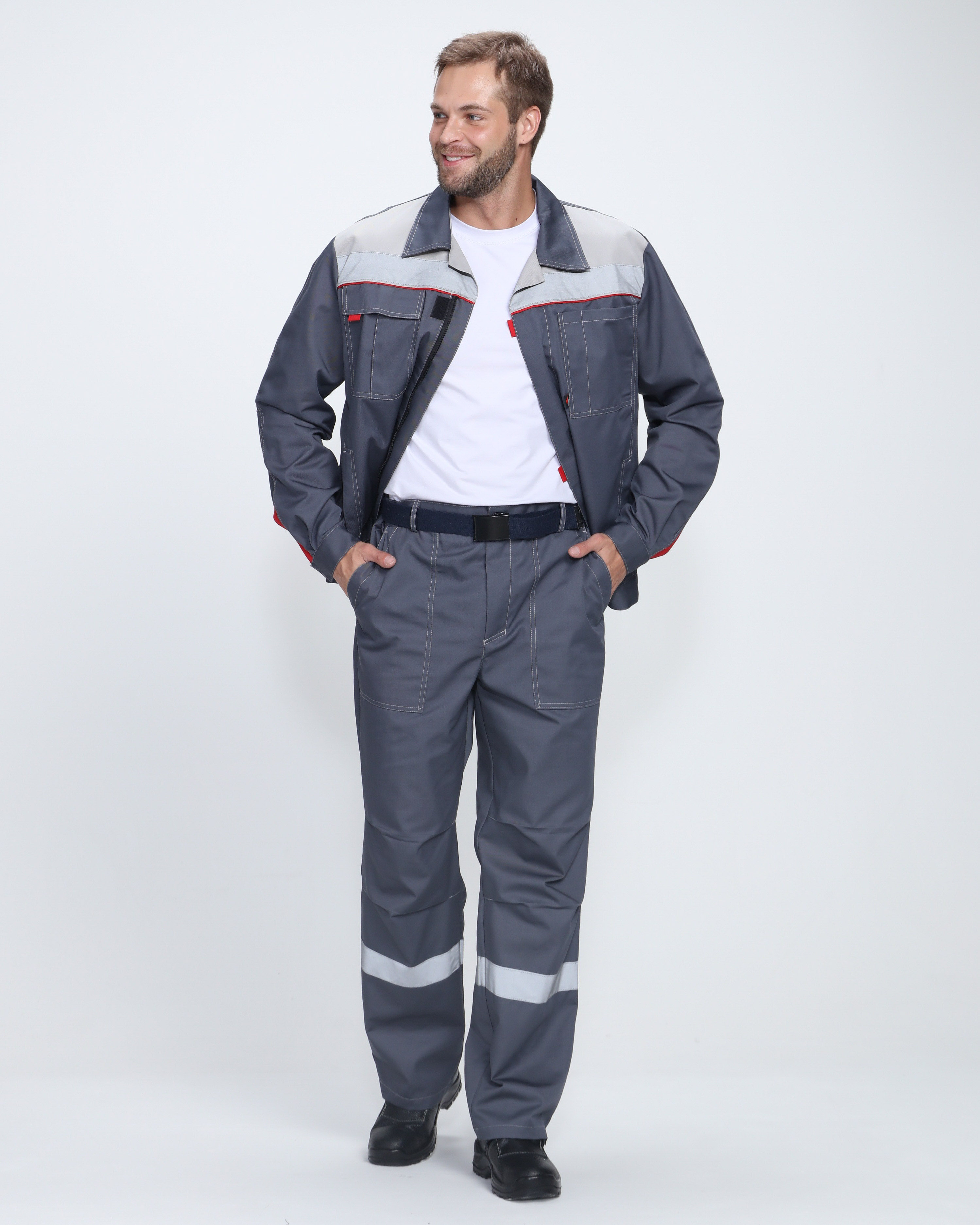 Костюм Фаворит-1 Премиум СОП IMP (тк.Смесовая,240) брюки, т.серый/серый/красный