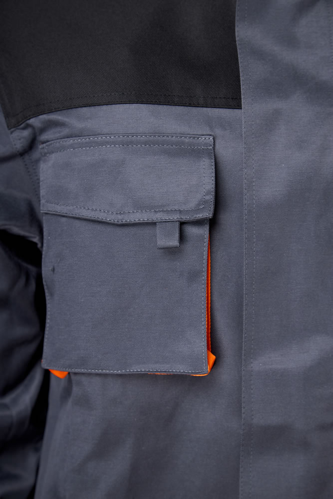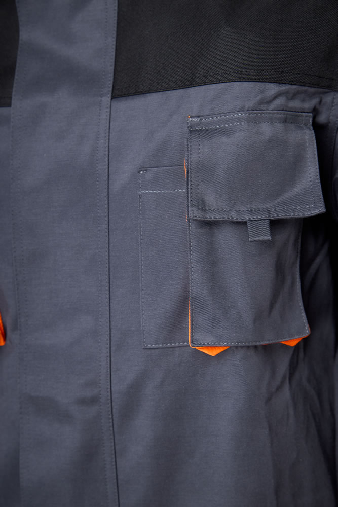 На передней части п/к (нагрудник) расположен многофункциональный накладной карман с клапаном.