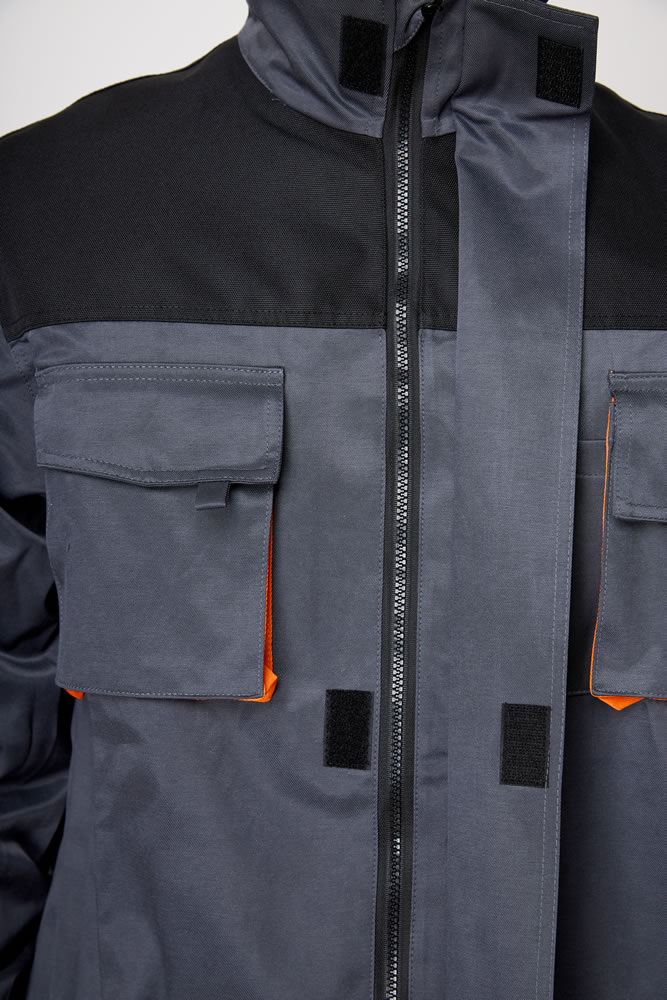 Куртка мужская прямого силуэта с центральной застежкой на ветрозащитную планку (с тесьмой-молнией и контактной тесьмой).