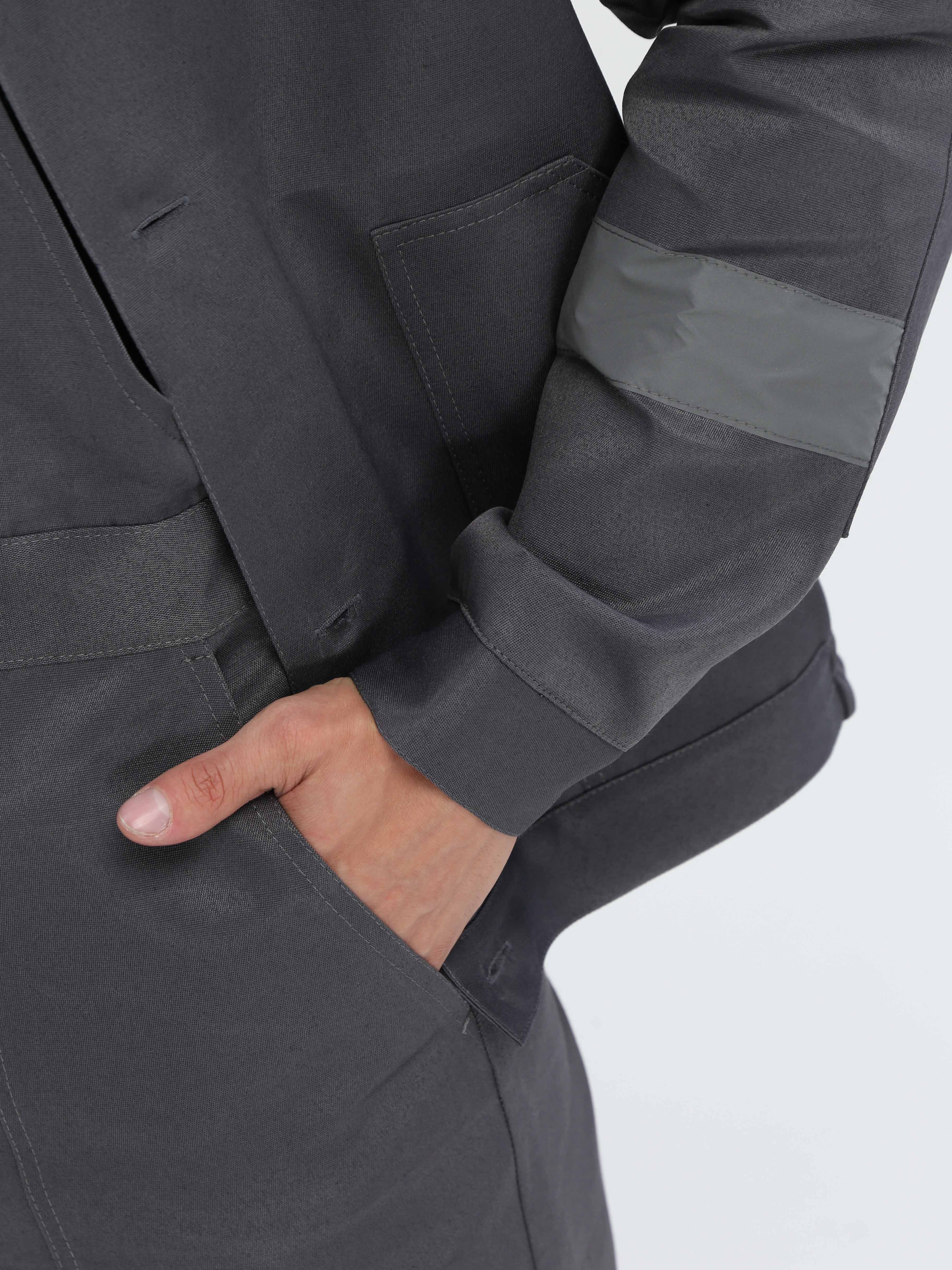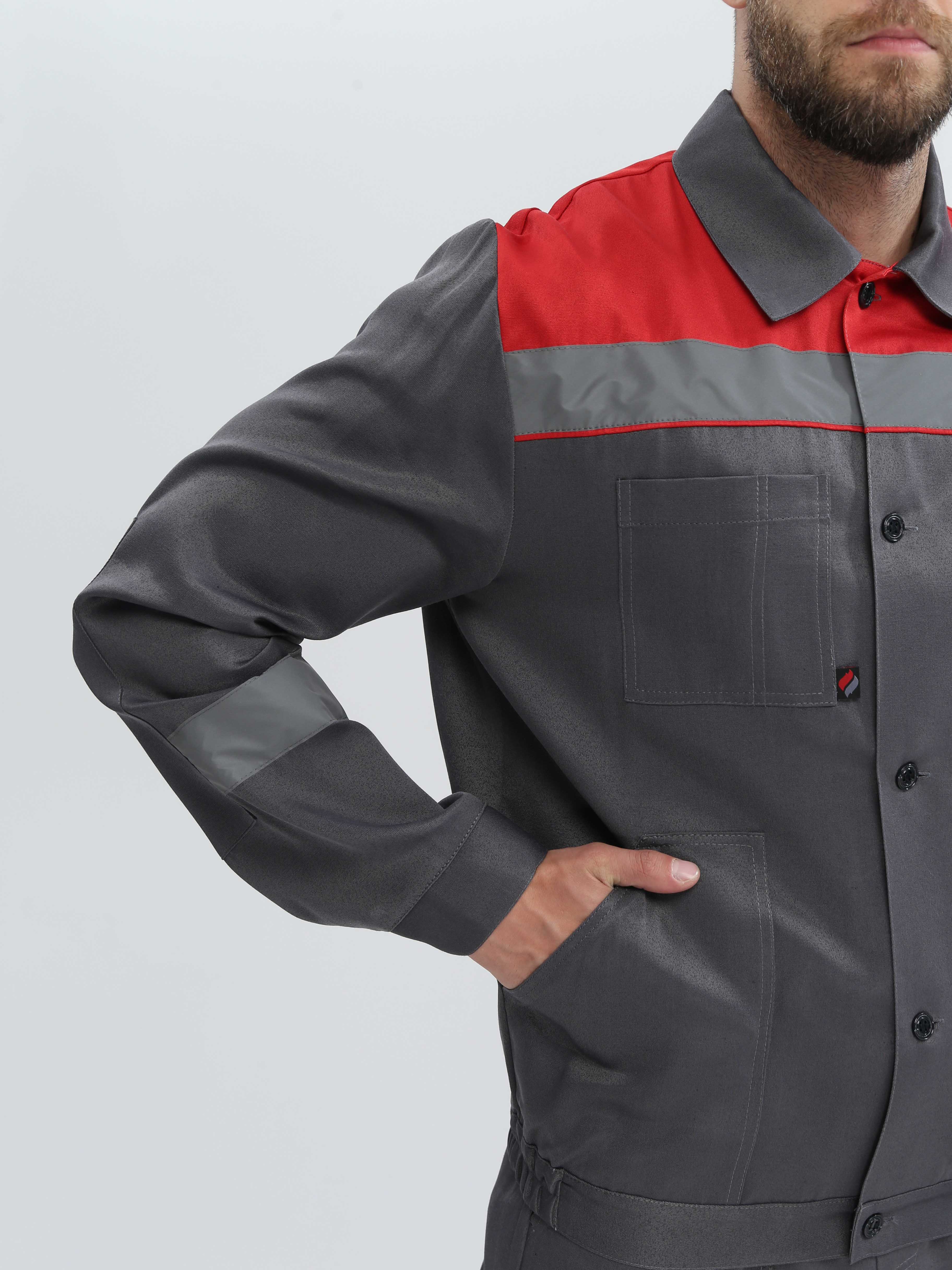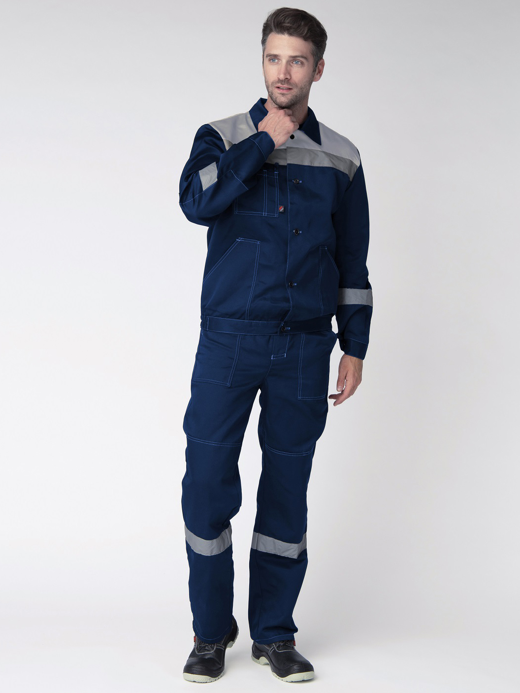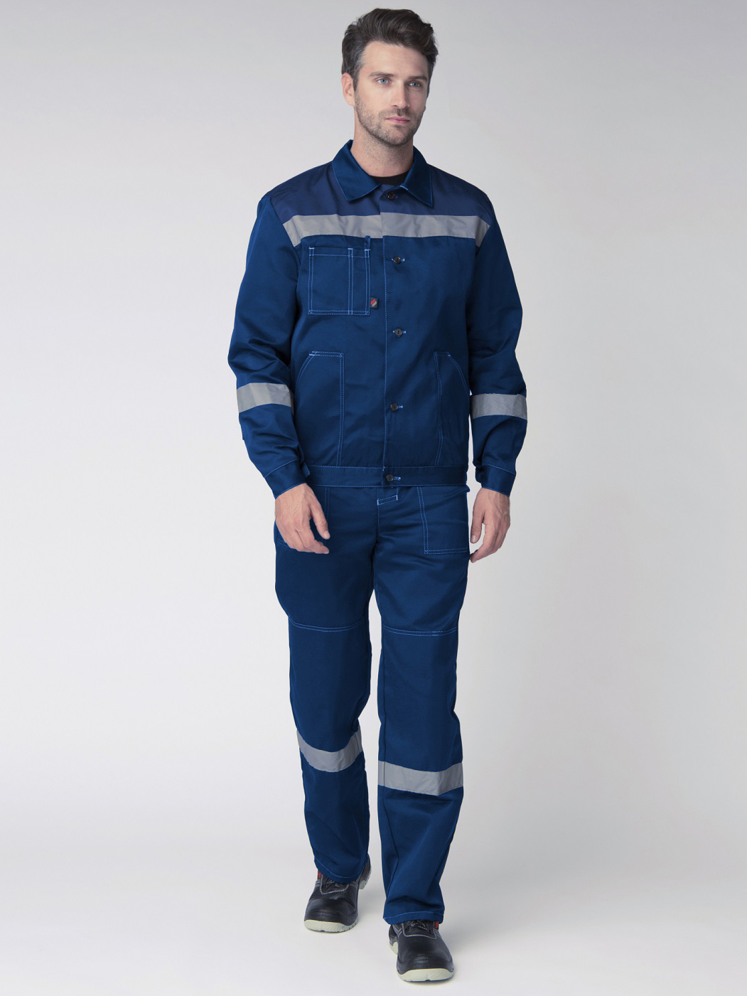 -Спецодежда мужская оснащена широкими светоотражающими полосами для безопасной работы в местах с плохим освещением