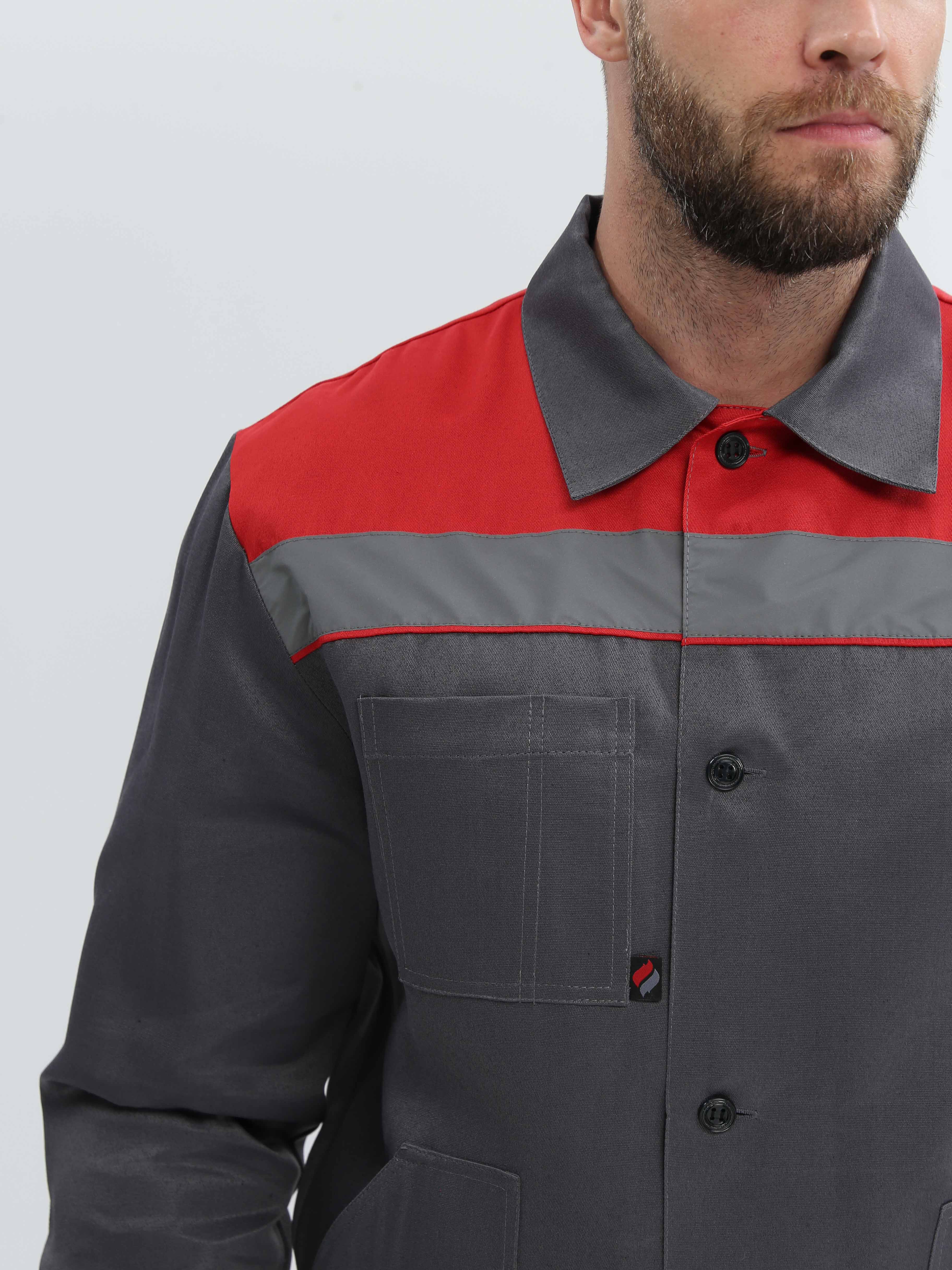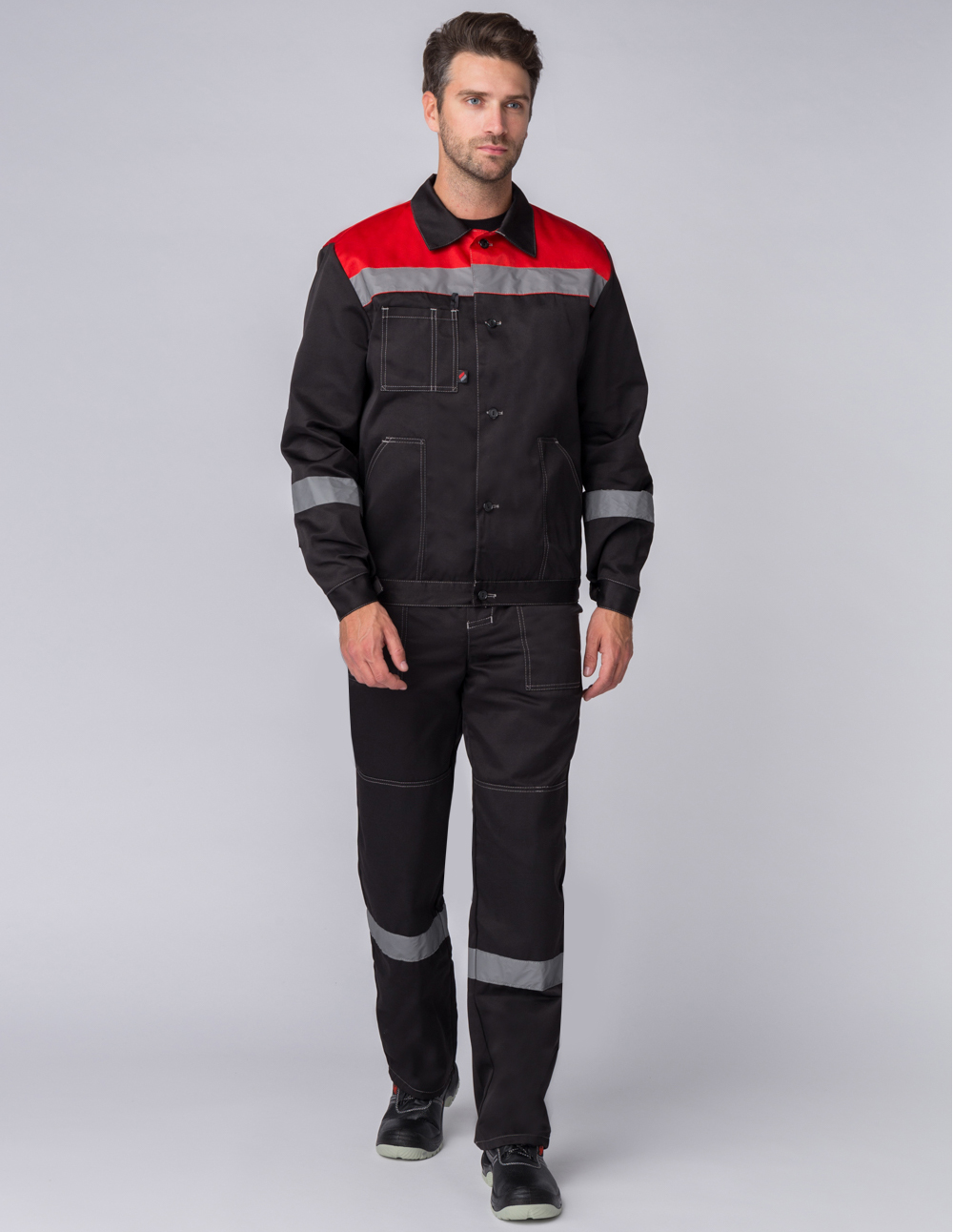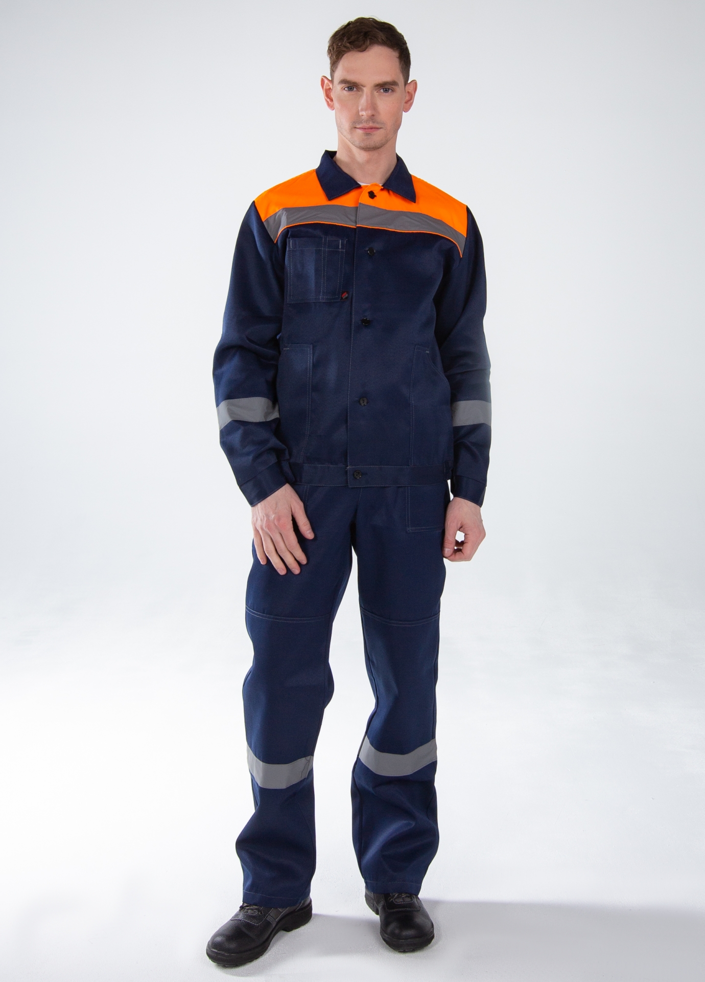 -Спецодежда мужская оснащена широкими светоотражающими полосами для безопасной работы в местах с плохим освещением