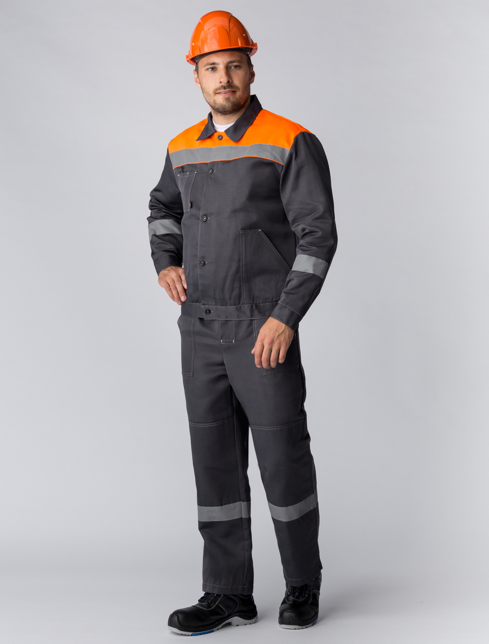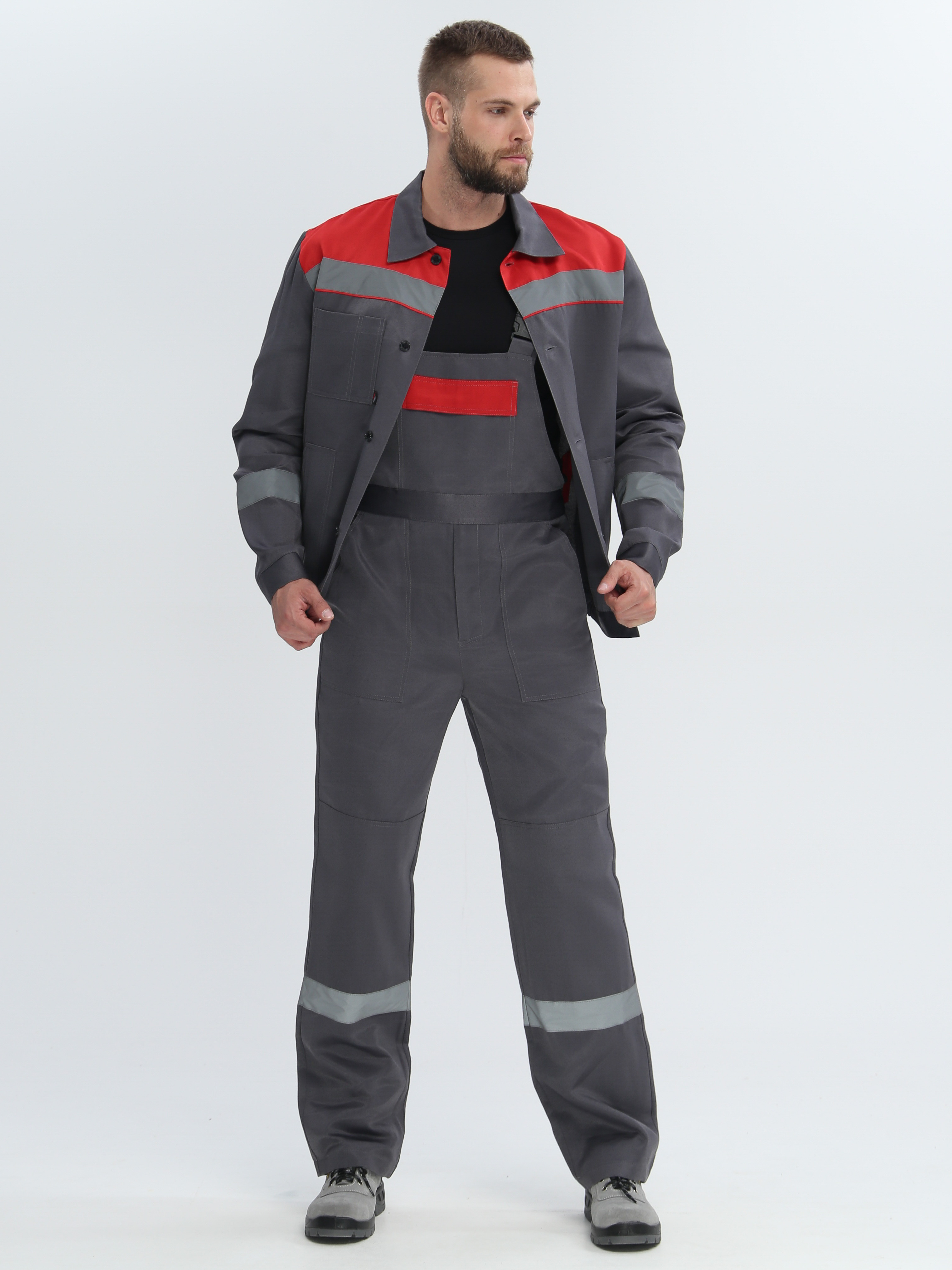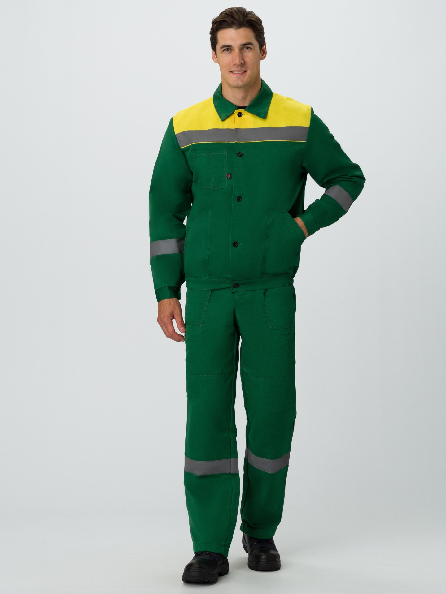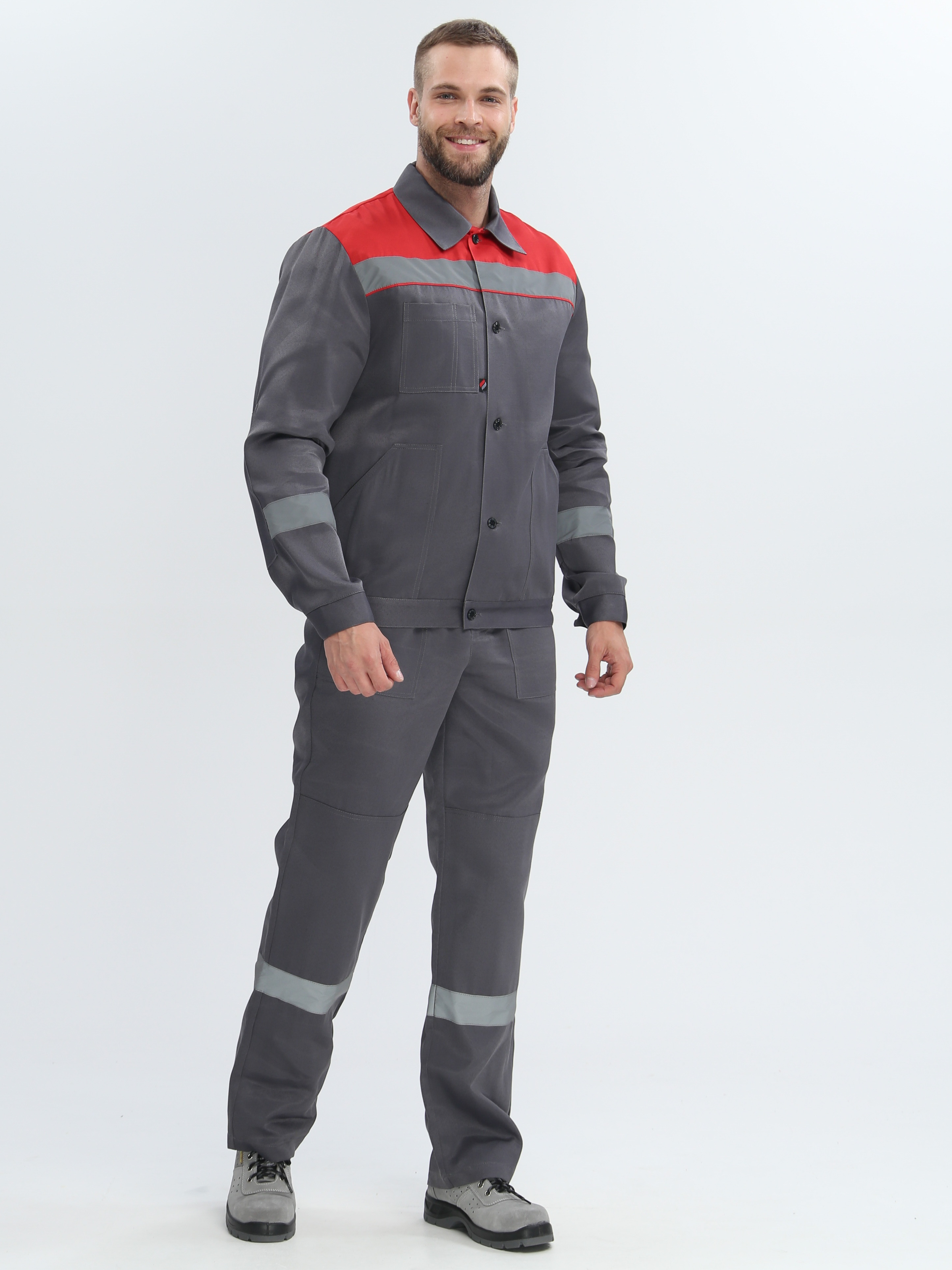 -Спецодежда мужская оснащена широкими светоотражающими полосами для безопасной работы в местах с плохим освещением