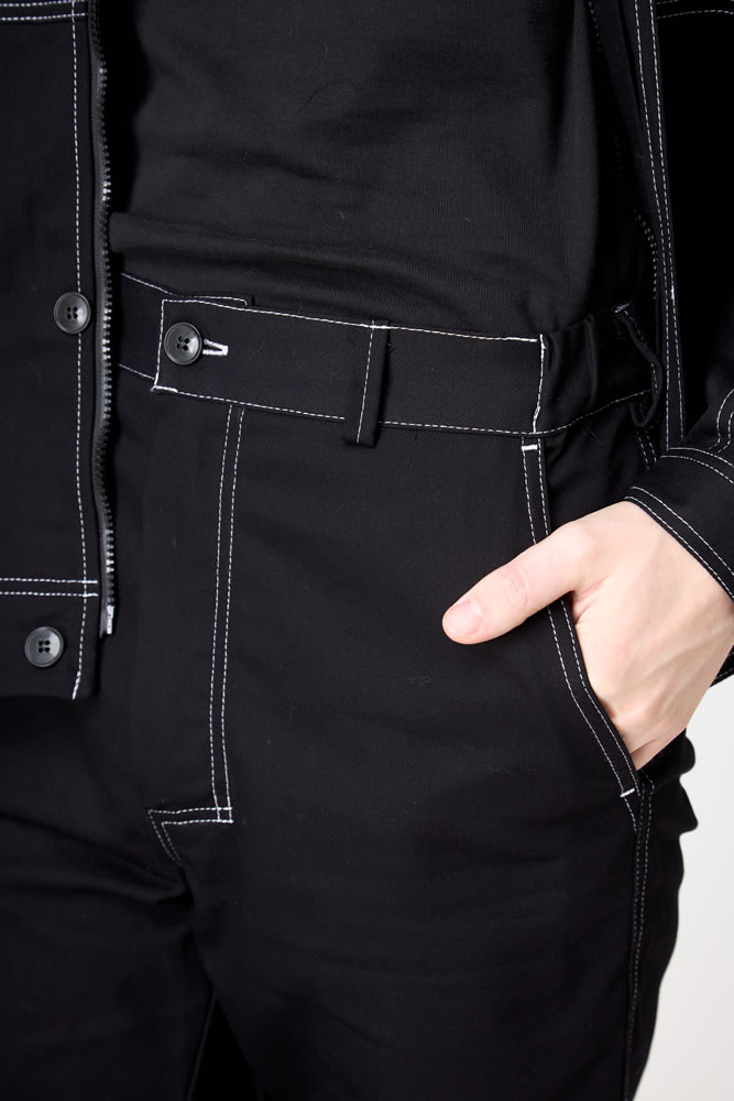 По переду застежка-гульфик, также имеется застежка на сквозную петлю/пуговицу. В брюках есть шлевки для дополнительного съемного пояса. На передних частях брюк расположены боковые верхние накладные карманы с косым входом. И один боковой, накладной карман по задней части брюк п/к для инструментов.