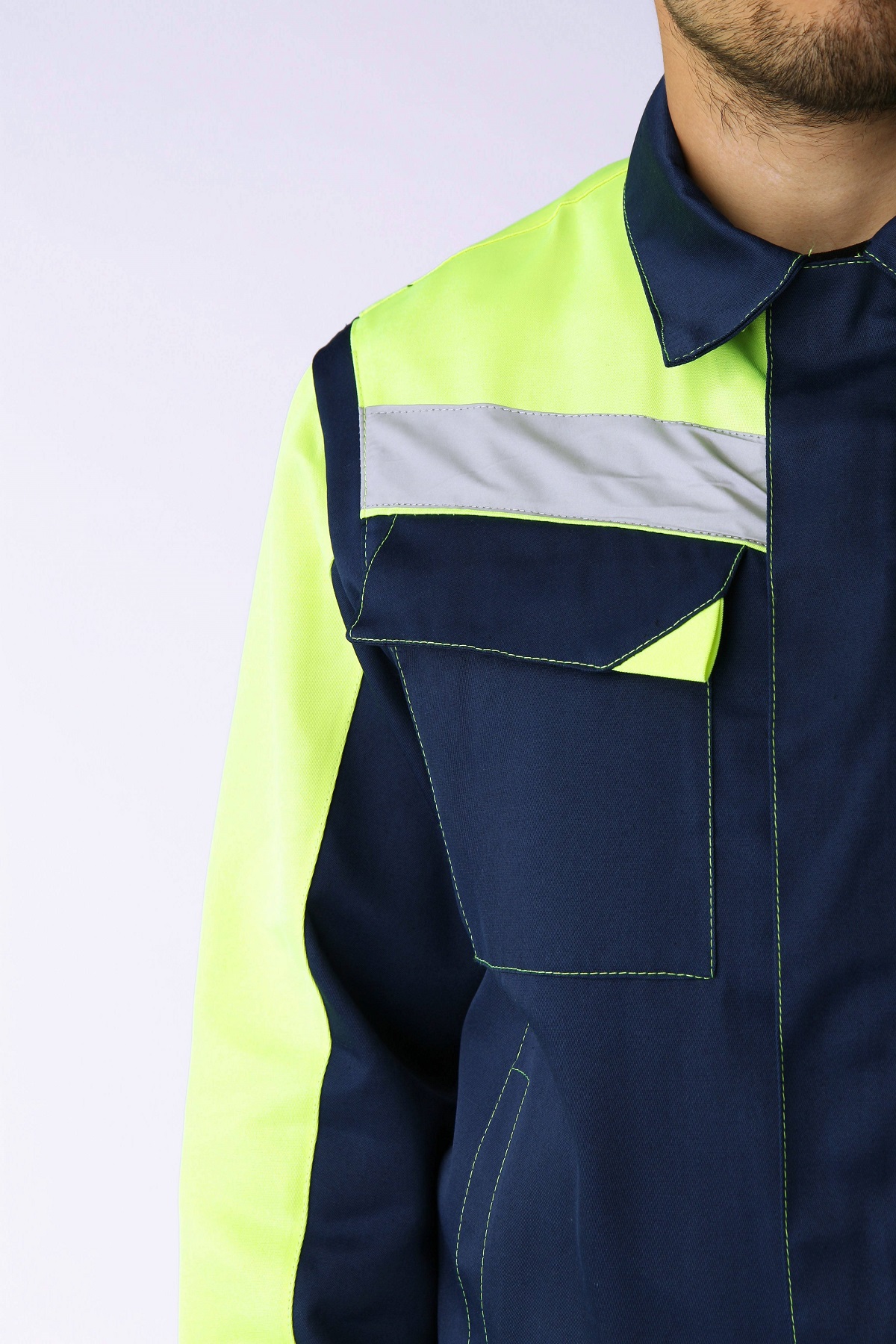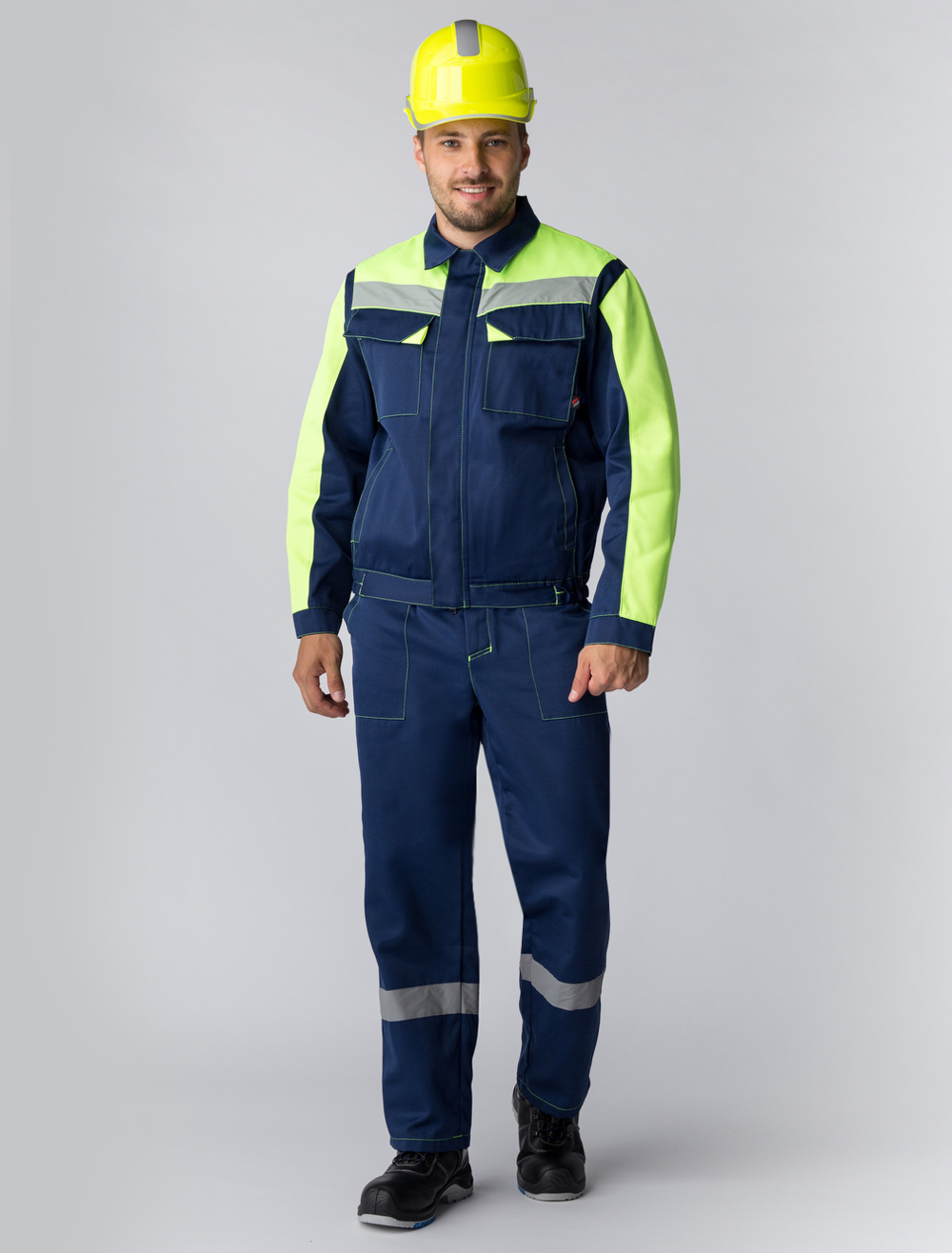 -Спецодежда оснащена широкими светоотражающими полосами 50 мм для безопасной работы в местах с плохим освещением и в темное время суток